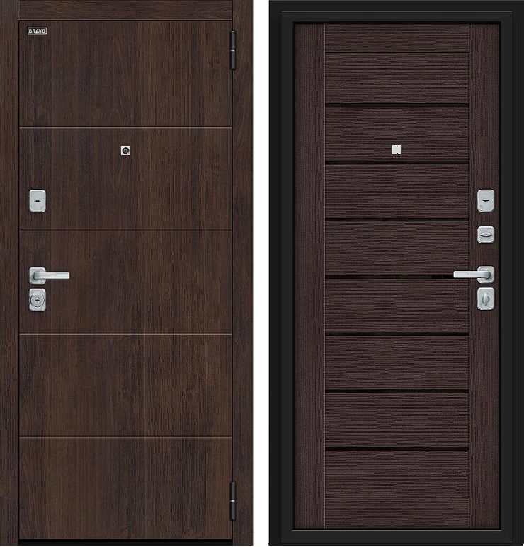 Надежная входная Дверь Браво Прайм/BChrome Almon/Wenge Melinga премиум класса по цене 40 191 руб. Большая толщина стали защитит от проникновения в ваш дом, квартиру или коттедж. Используется очень качественная фурнитура: замки, цилиндры, ручки, защелки. Покрытие и отделка двери изготовлено под внимательным контролем производителя. Дверь имеет долгий срок службы и гарантию.